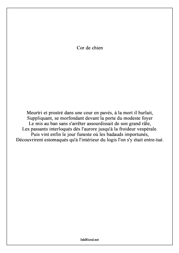 Éternité 13 décembre 2014Homepage, Texteséternité, inkblood.net, Poème, texte Cela pourrait aussi vous intéresser : [Conte] Le chien rouge Philippe Cor de chien Toi
